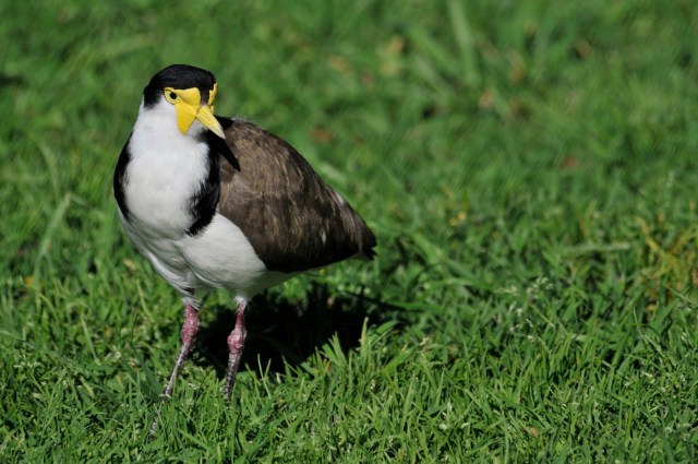 The bird above is a Masked Plover – one of the Vanellus plover Genus, like those of the African plains. This large shorebird is part of the park, garden, cemetery, and gold course scene.