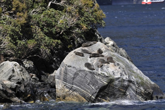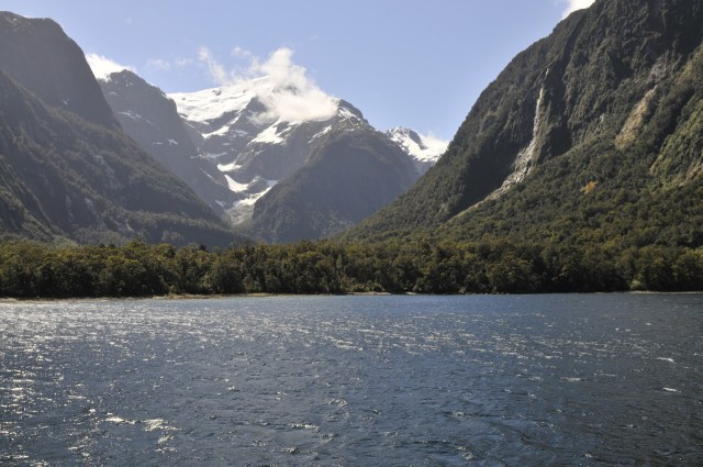 The Milford Track (or the Milford Trek) is a world-renowned hiking path. It takes three and a half days to walk this spectacular path. You have to be ferried by boat to the start and then picked up by another boat at the end. Thus, even though the track has thousands of people on it, you feel alone in a remote place. You are then bussed back to your starting point. But once you finish the walk you should jump on a cruise boat that travels the fiord. It is a grand spectacle; the cliffs rise from the ocean more than a mile straight up. The Nothofagus Beech trees cling to the stark rock walls and form a very unlikely forest. There are the occasional tree-slides that occur when thousands of trees break loose from the rock and slide down to disappear in the sea revealing the rock that they had clung to for many years.