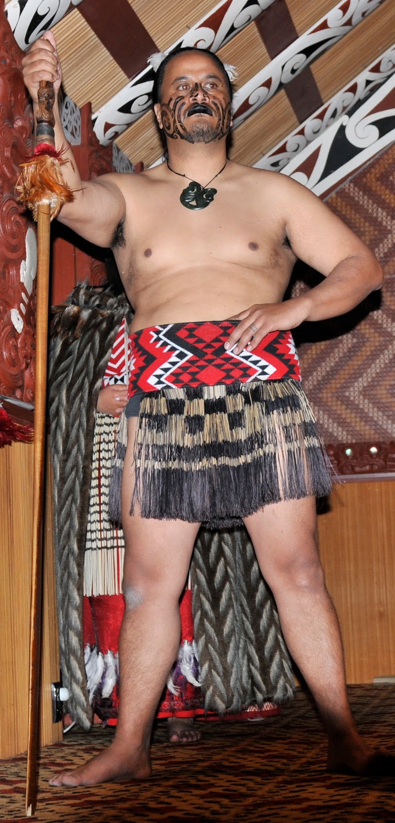 | Much of the old Maori way was a mix of threat and intimidation. They respected those who would meet them and join them in meals and song. But the welcome was anything but friendly in appearance. There was a vigorous greeting accompanied by faces and weapon displays. If the arriving party accepted the invitation (by picking up the leaf that was laid in front of them – accompanied by all sorts of threatening gestures) they were then invited in to the main buildings and became part of the evenings activities. Weapons and war were a significant part of Maori life. In WWII the Maori battalion was highly decorated and greatly respected by allied troops. They were warriors. |