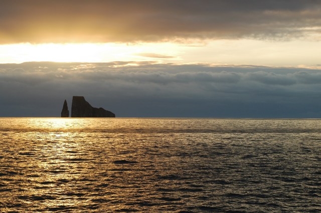 The earth’s crust as we see it is a series of floating plates that are buoyed up by the hot magma of the inner earth. These plates often move; creating trenches, undersea volcanic troughs, and mountain ranges where they collide with another plates (like the Andes to the east of the Galapagos). The older islands have eroded and traveled with the plate eastward. Volcanic activity still occurs in the islands; in the region of a “hot spot”. This spot is a plume of magma that extends upward from the earth with such heat that it continually melts through the plate at the same spot. The plate moves and the islands form in a row like the (inverse) of dripping pancake batter from a spoon on the way to the griddle.