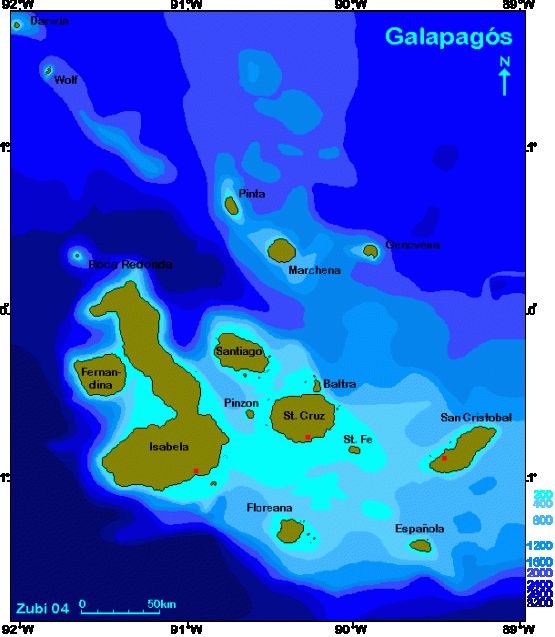 Over the next ten days I will be posting blogs from several islands in the Galapagos chain. This posting will set the geologic tone for the rest of the posts. The Galapagos are not lush and green like most equatorial sites. They are often bare and rocky, sparsely vegetated, and surfaced by what look like fresh lava flows. The plants and animals of the Galapagos are actually quite limited in diversity and many of the organisms have adapted to the archipelago or to an individual island.