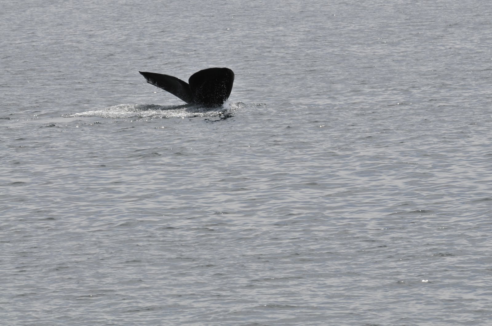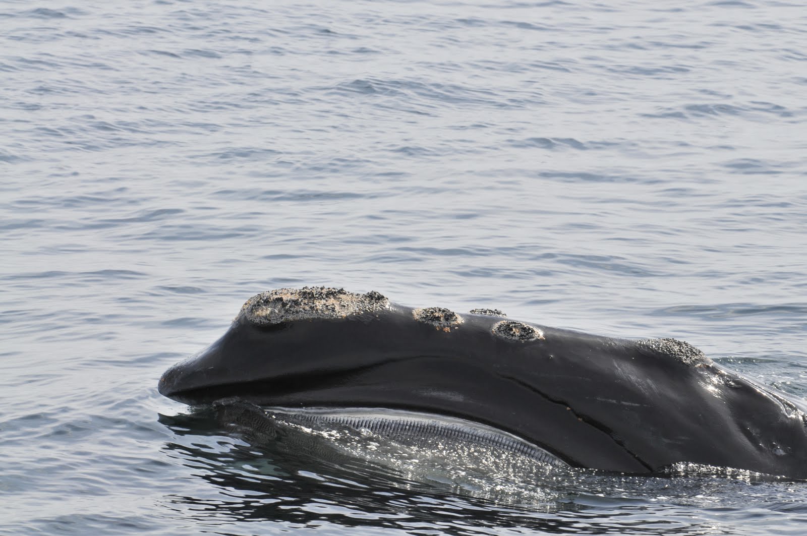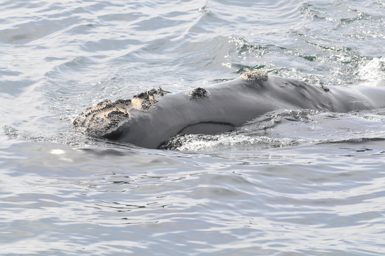 The Right Whale is not as showy or active as the Humpbacks that will soon arrive. So, most of the images will be of modest chunks of whale in a dark gray-green ocean.