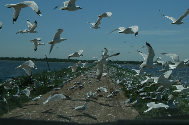 In the winter we see a lot of Ring-billed Gulls here on the Atlantic coast. These are birds that nest in north-central US and south-central Canada and then fly east along the St. Lawrence to the coast. Dave Winfield hit a Ring-billed Gull with a baseball in warm-ups in the Toronto outfield one evening – remember that? It’s a wonder that more don’t get hit as there are tens of thousands of Ring-bills that migrate through the Toronto area. There were easy 4000 pairs nesting on this dike road through a sewage treatment facility – it was a narrow and noisy (and messy) ride.