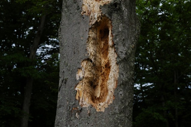 Pileated Woodpeckers were quite common and were seen every day. Woodpeckers the size of a crow are pretty impressive. But it was much easier to photograph the excavations that they make than to photograph the birds.