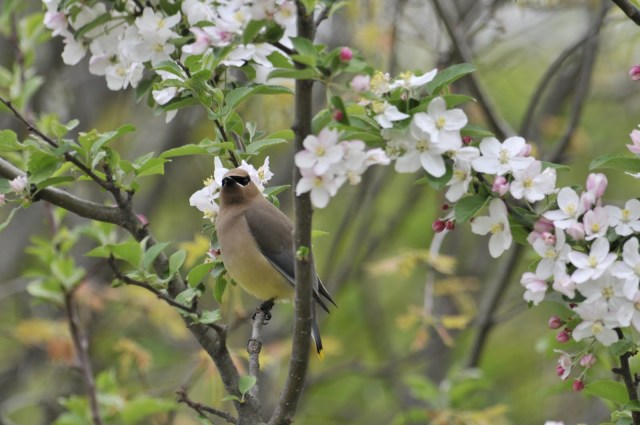 The birds below are Cedar Waxwings. A soft-plumaged species found throughout North America.