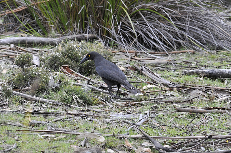 | The Black Currawong is a Tasmanian endemic. We saw several on Maria Island. They are in the same family as Butcherbirds and Woodswallows. The most common member of this group is the very common Australian Magpie. |