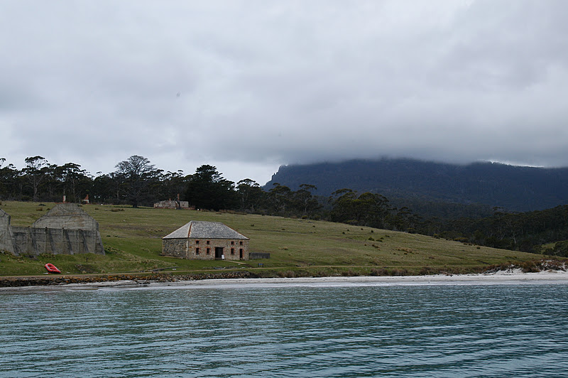 | Maria Island has been occupied by modern colonists since 1880 or so and has been home to a silk-making industry, vineyards, farming until 1972 when it became a National Park. The old buildings stand as a reminder of these earlier times. There are miles of trails and wildlife is abundant on Maria Island. Of course coastal Aboriginal peoples used this area for tens of thousands of years before the Europeans arrived. The coastal Aboriginal group (Tyreddeme) were quite flush with food and were much more sedentary that those peoples of the outback (this name for the remote, arid portion of the country applies to about 80% of the land). Like many of Australia’s early settlements the island housed convicts for about fifty years. It was an active detention area from 1825 to 1832 and again from 1842 to 1851. Three of the old stone buildings remain. |