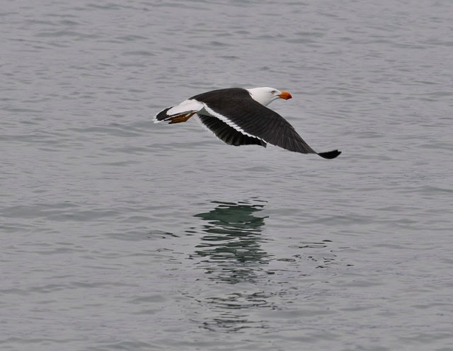 | Call me crazy but I like this mega-beaked gull. It may look like a Great Black-backed (eastern North America) or a Kelp Gull (southern South America) but the Pacific Gull is especially cool having this huge red-tipped beak. It may be rather common and easy to see in appropriate habitats – all you have to do is travel the south coast of Australia or the east coast of Tasmania and you will find them. The Pacific Gull reaches adult plumage after 8-10 molts taking five years. |