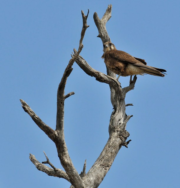 The Brown Falcon is a good bit like the Peregrine Falcon that is thinly, but widely, spread in North America. It was not the most common bird of prey but we saw several. We saw many Wedge-tailed Eagles every day, Brown Falcons on several days, and ten to twenty Whistling Kites each day. There are no vultures or Buteos (like Red-tailed Hawks here in the USA) in Australia but there are Kites, Eagles, Sea-Eagles, Accipiters, and Harriers. Most of the pictures I took of eagles and such are of birds in flight and they don’t offer much to the blog.