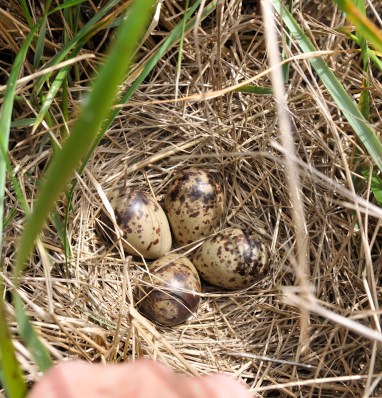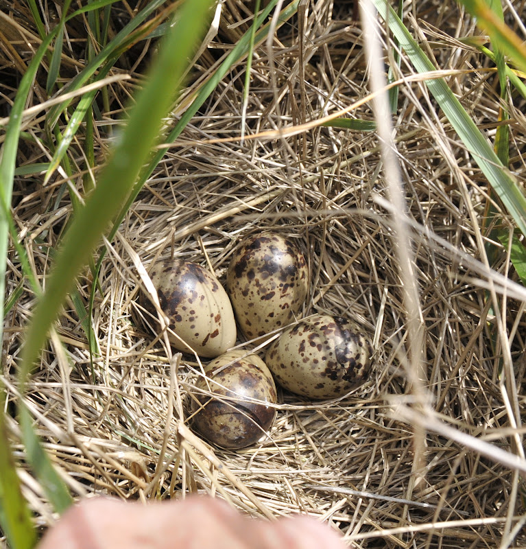 | After the female bursts off the nest the eggs are not always easy to find. They are often in tall grasses and the nests are made of the same dry vegetation that tangles your feet at every step. |