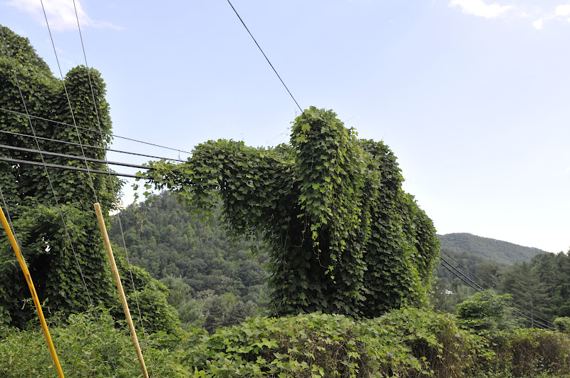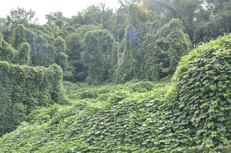 Kudzu is a member of the pea family that has found a home most anywhere it lands. In 1876 it arrived here in the United States at the Centennial Exposition. It was displayed in the Japanese section of the Expo and from there it was taken throughout the country. It is a plant of warmish ground and we now see it widely throughout the southeastern USA. It did not establish in any other part of the country though there is one very small section of Ontario Canada that has Kudzu growth. It is covering an additional 150,000 acres per year in the south.