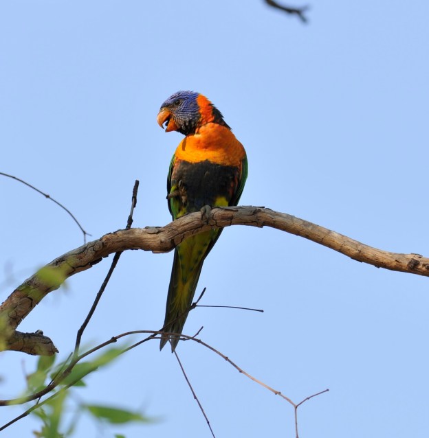 | The Red-winged Parrot was a regular member of the avian group using the town’s central park lands. This species seemed to favor mangoes and spent a good deal of time peeling them. |