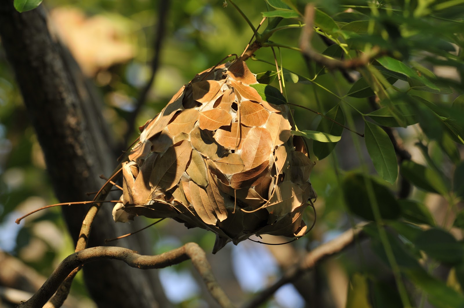| There are hundreds of Green Ants in each of the scores of small nests that make up the much larger colony. |