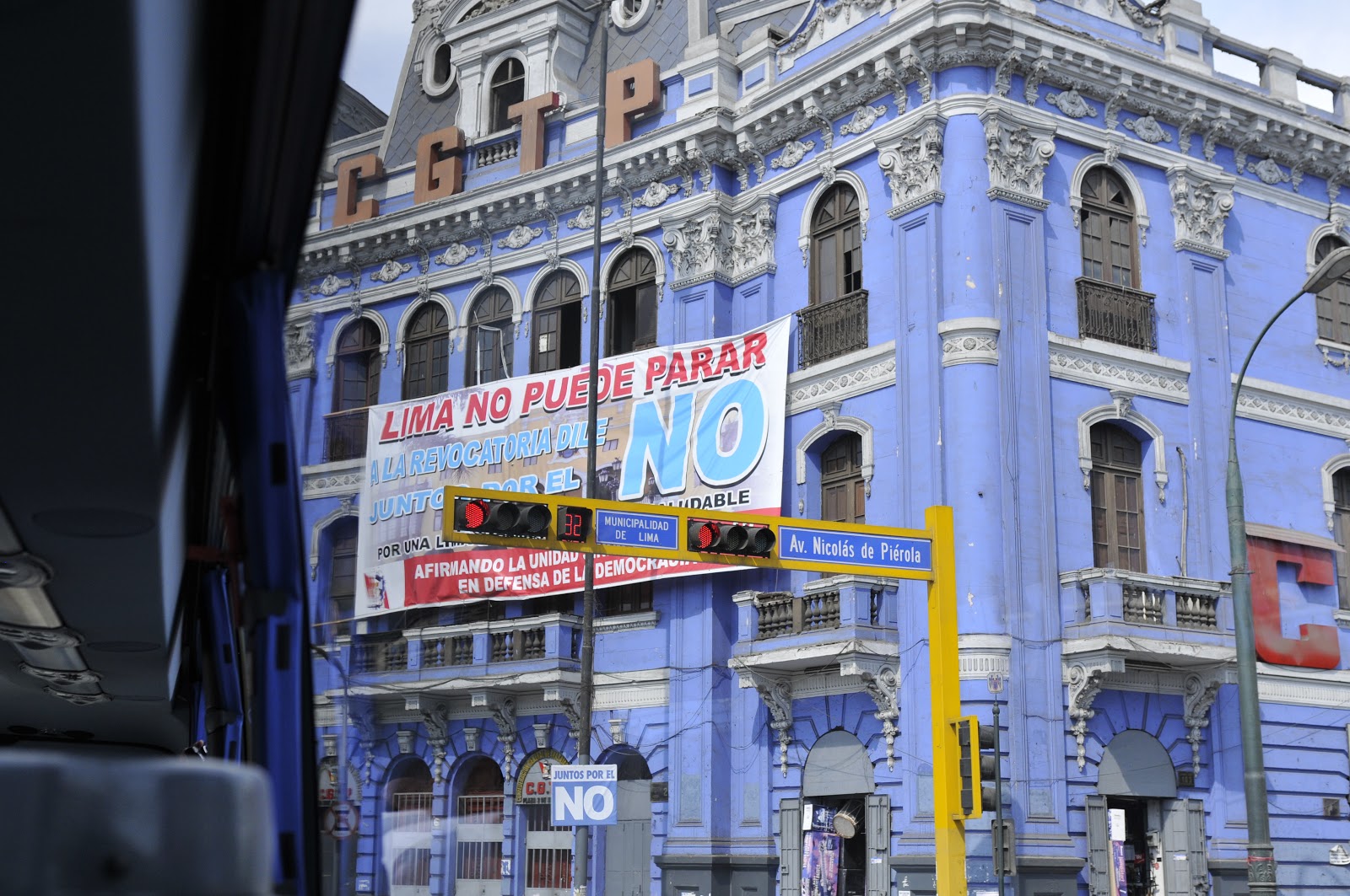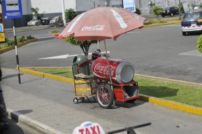 Food and beverages are only a few feet away throughout the city. Restaurants can be fast food like or served by elegant tuxedoed waiters. As shown on the building below the politics of the city is a river flowing near the surface. The banners, placards, and graffiti are often political in origin and meaning. Voting is compulsory in both Peru and Ecuador and a fine levied if you miss the vote. You are also unable to get a car registration, drivers license, or take out a loan until you have settled the non-voting fine.