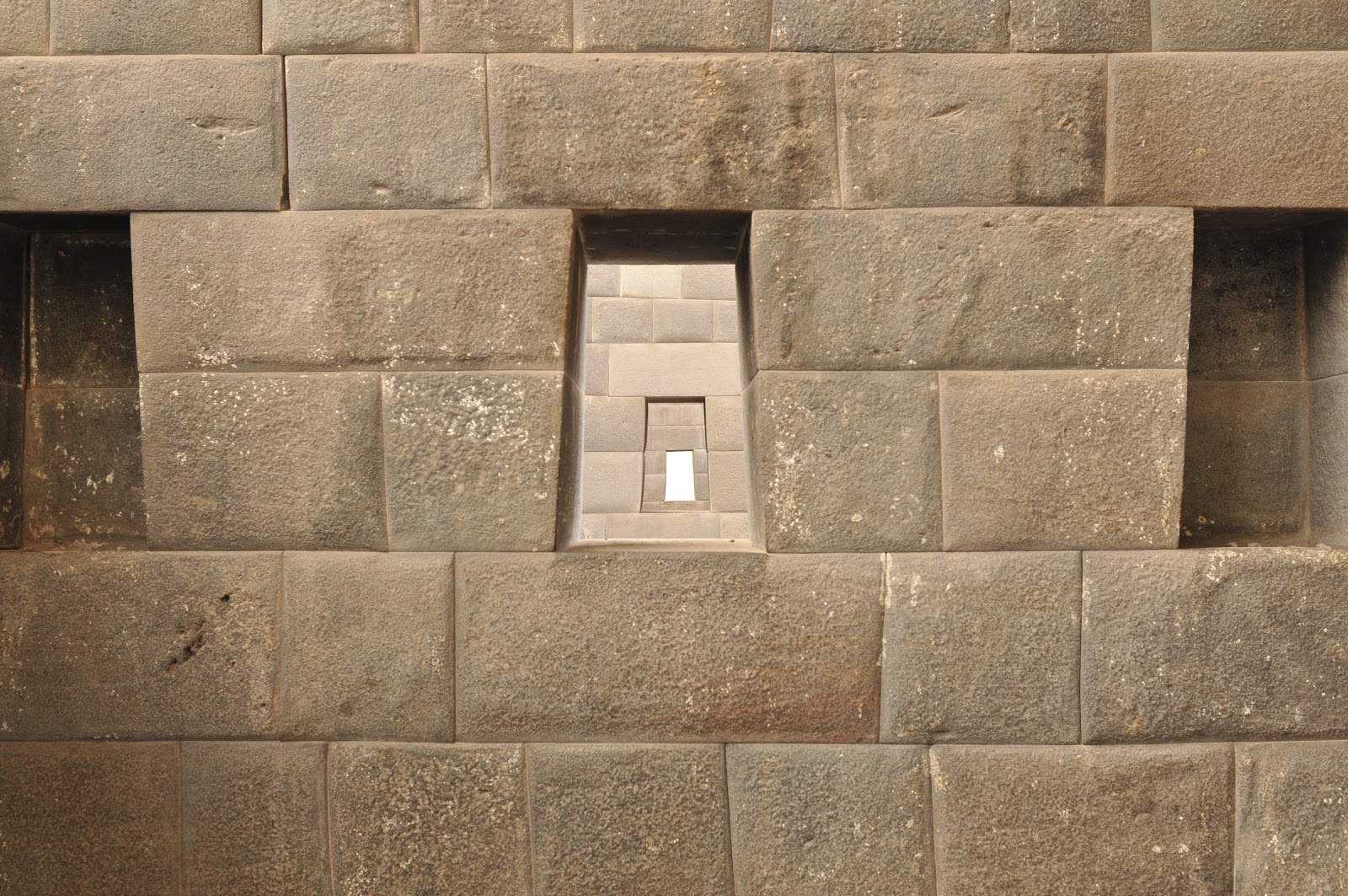 The Spaniards did a real number on the cities and cultures of what is now Latin America. In the Peruvian Andes there are a few remnant facilities like Machu Picchu that remain unexplained but mostly intact. In Lima there are a few places where the precision of the Inca stonework persists. In many places the Spanish built on top of the most religious Inca places in order to establish dominance. In these cases there is sometimes preserved work hidden underneath or used as a foundation. The walls below were part of a main building in what is now Lima. The windows of the three walls line up with each other and the joined areas of the stones are remarkably exact. The few places where there seems to be narrow cracks are the result of subsequent earthquakes