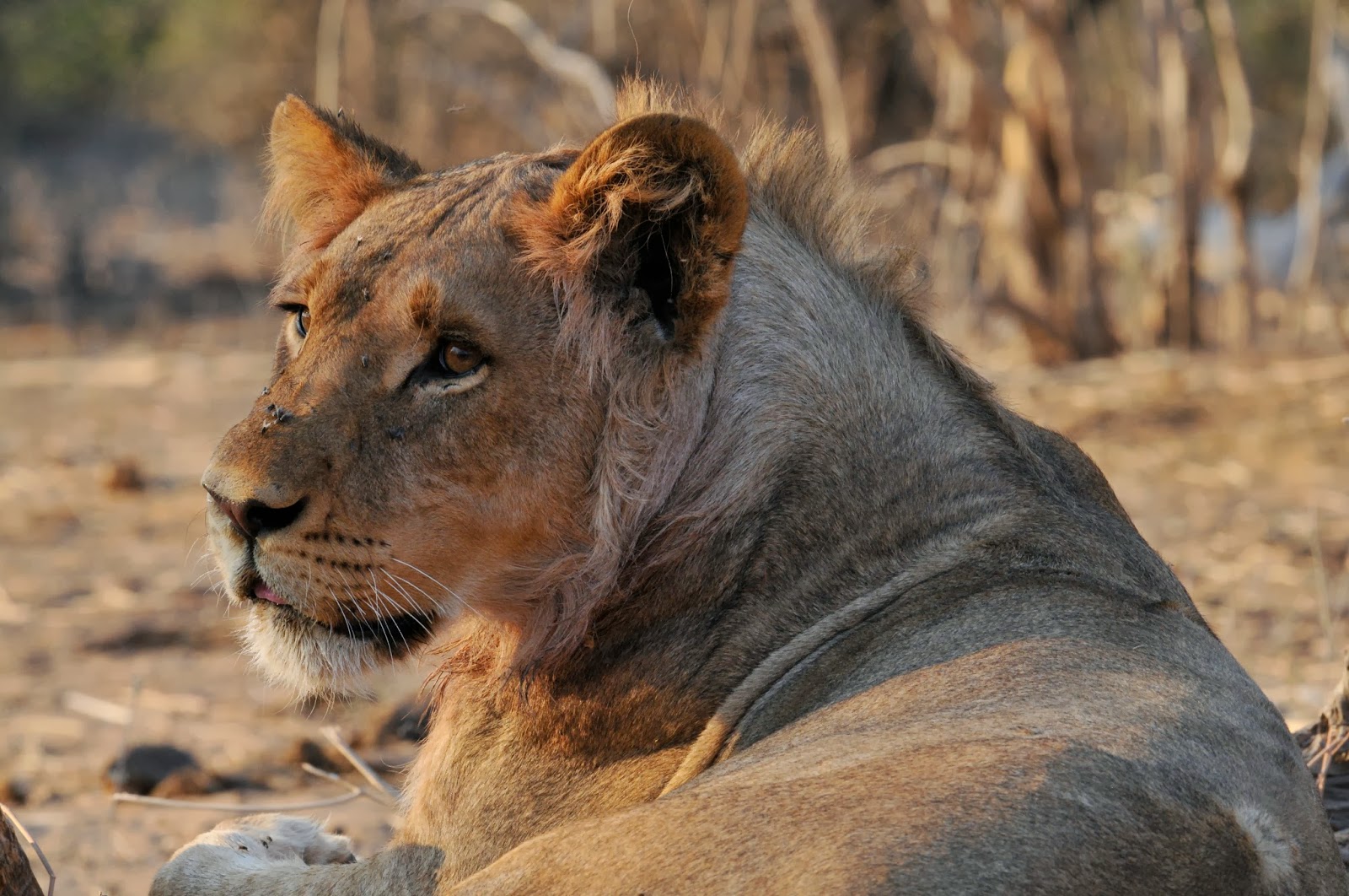 | Young males will stay with the pride for about two years. The males, brothers or cousins, go off as a pair or small group and try to find a territory where they can dominate, thus become the mating male(s) to a pride of females. In many cases they challenge existing males; sometime defeating them and taking of a territory with females and other times being beaten and hurt. The injuries in these confrontations often result in the displacement and eventual death of the losers. |