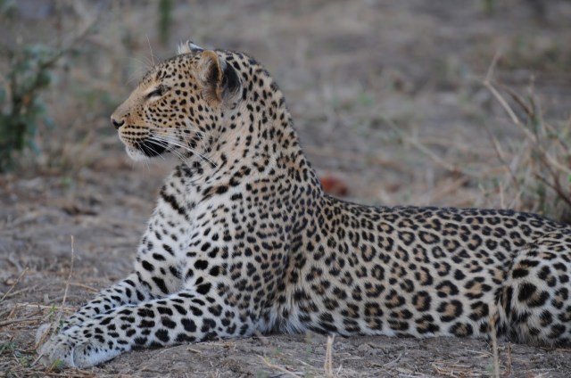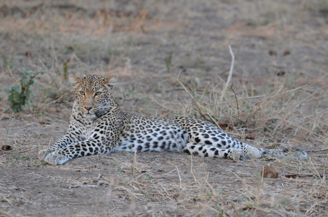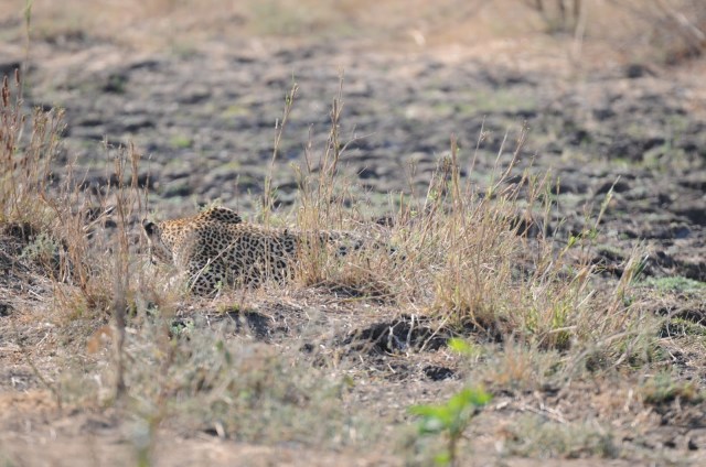 | When she relaxed she lay out on the ground usually right out in the open. Most leopards learn to climb trees to avoid encountering troublesome competition. It is probable that when lions or hyenas arrive to steal her dinner she will learn to (both) hide her food and herself in the local trees during the stay and during siesta time. If she doesn’t learn this lesson the lions and hyenas are likely to kill her or at least make her regret learning slowly. |