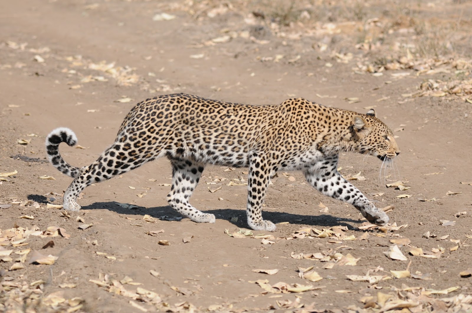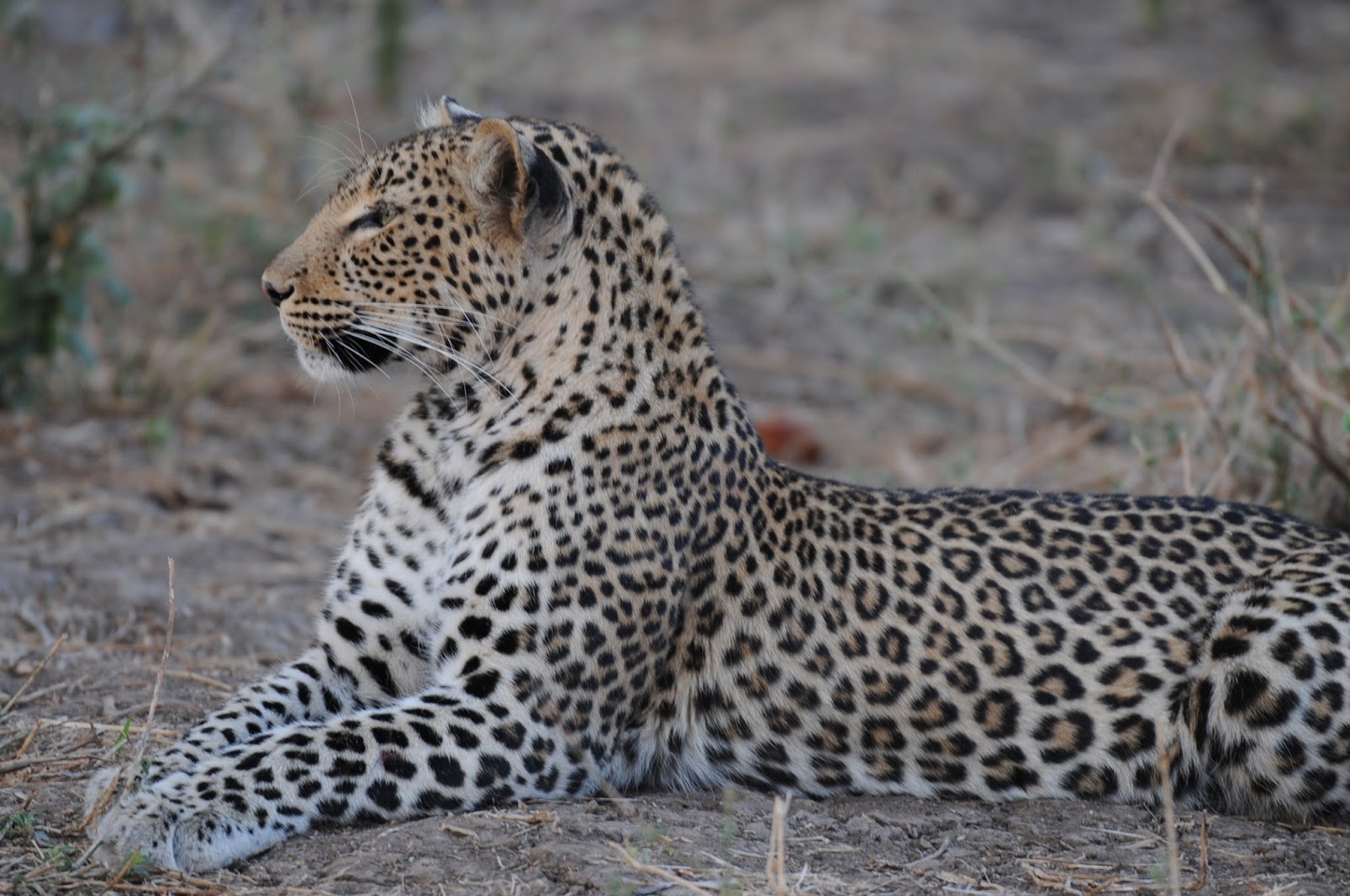 In Zambia, along the Zambezi River, inside the Lower Zambezi NP we came upon a most cooperative young female leopard. this was great for us but may not play out as great for her. Leopards should be shy and retiring, spending the day in a tree or thicket, and living as a creature of the crepuscular times. She was seen several days in a row out in the open and on the ground near her food/kills. This will soon invite lions and hyenas to the area and she may not only loose her lunch but her life.