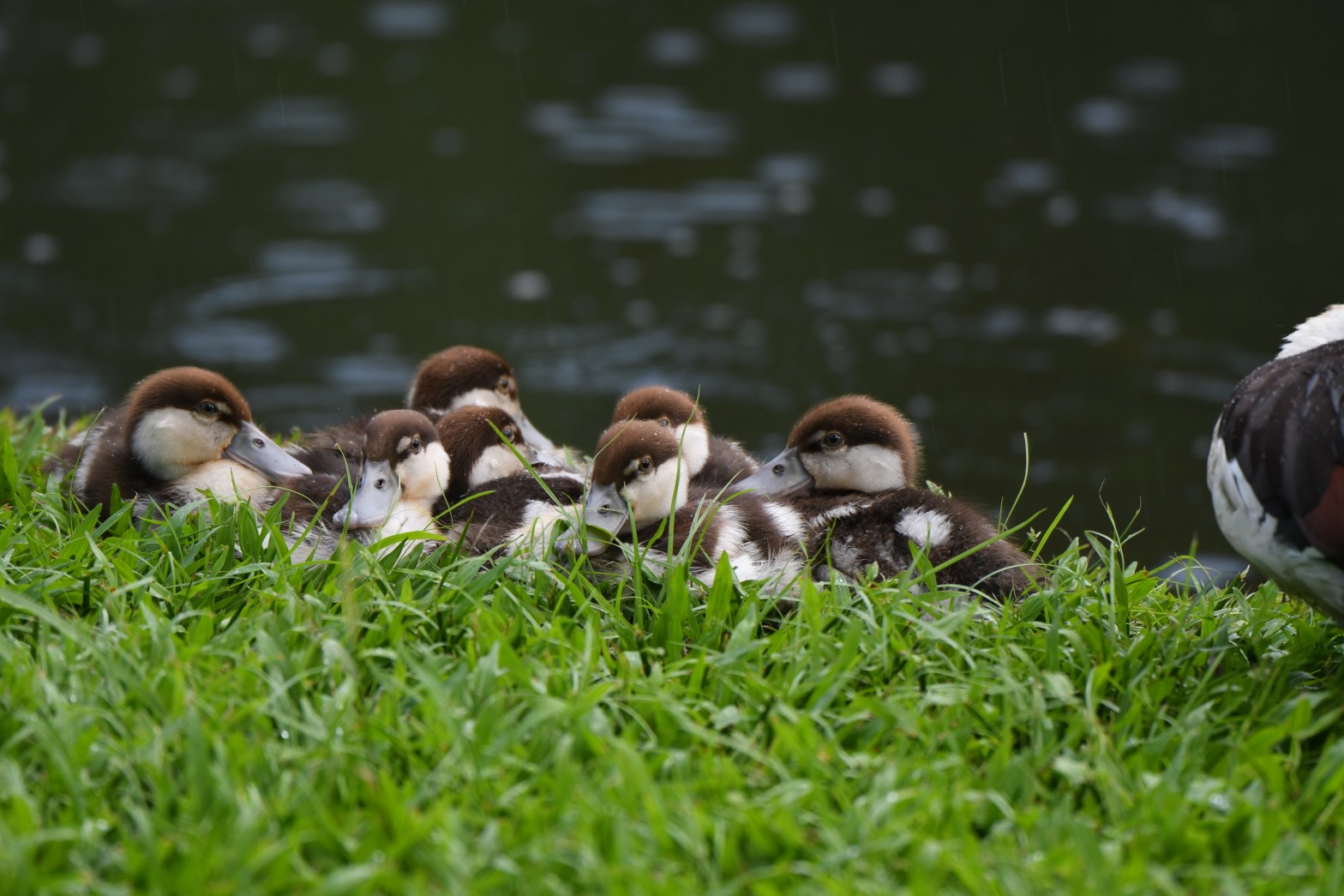 - The ducks and duckling shown here are Rajah Ducks. The seven youngsters are growing in a very public place and will likely be rather tame/accommodating as they get older.