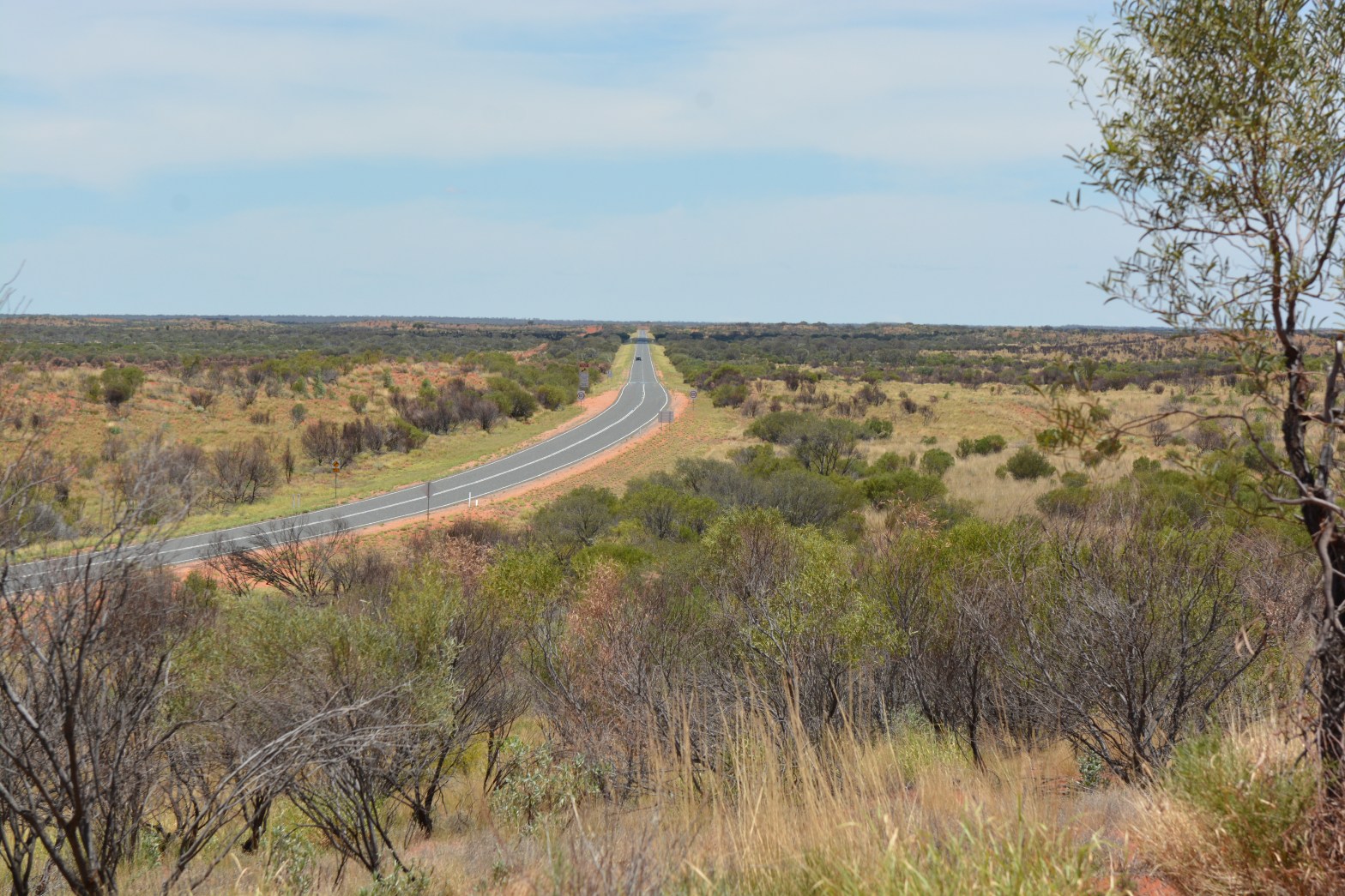 The interior is arid. It has had some rain the past few years and the desert oaks and mulga (acacias) are fully leafed out and quite green. The pictures below give you a sense of what the drive from Alice Springs to Yulara (where Uluru/Ayers Rock is located) looks like. Occasionally a flock of budgerigars or a kangaroo might be seen but generally it is just you, the vehicle, the vegetation, and the road. The geology has been designed by ancient water courses; for example the Finke River bed is well over 300,000,000 years old; the Todd River in Alice is maybe the same age. Wind and rain have worn away two great mountain ranges in the past billion years or so. Australia is quite flat now.