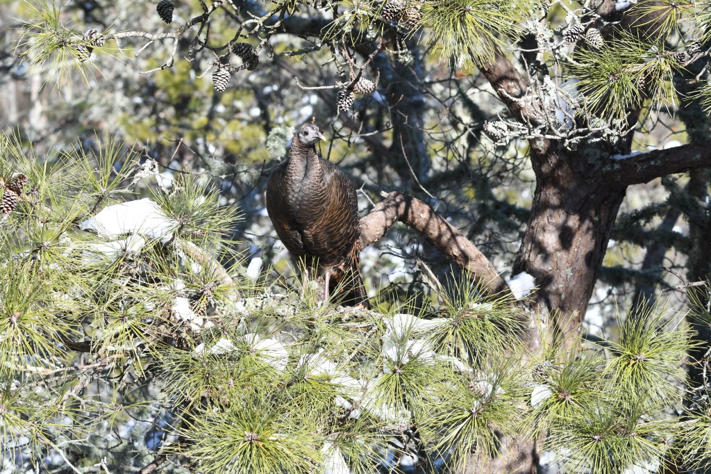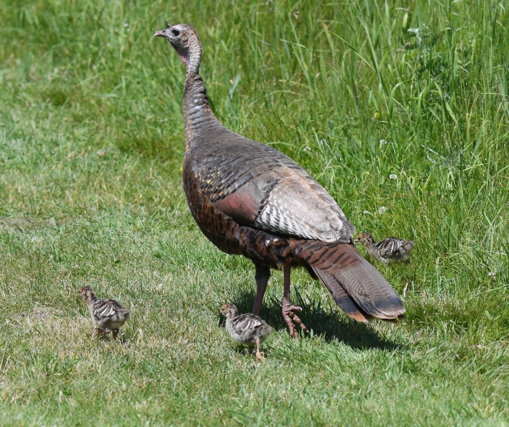 I had two Turkeys digging a couple of pits in my lawn the other day. I moved them along where they joined the rest of the group of 13 across the street.