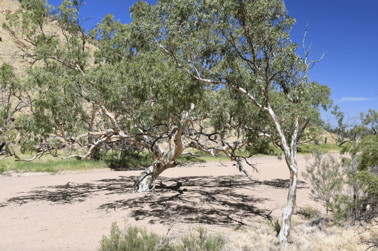 There are is nice flattened trail here, Black-footed Wallaby’s, a dried river bed, and very large Red River Gums (a rather typical eucalyptus).