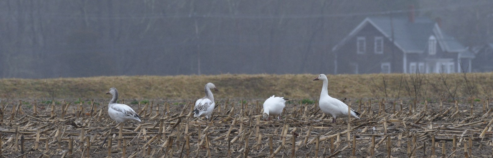 This was an odd sight. I tried not to seem to interested or impressed – as were being flown where birds usually rest – but I have to admit they were eye-catching.As I mentioned there were kites – not the bird kites but the airborne floaty things. In this case a Star Wars flyer with a long tail and in the top images, those pairs of pants or lower body parts.These are snow geese (SNGO); probably a pair and last years two youngsters. These birds were not on the Cape but in a large corn field in southeastern Massachusetts on a rather dreary day.