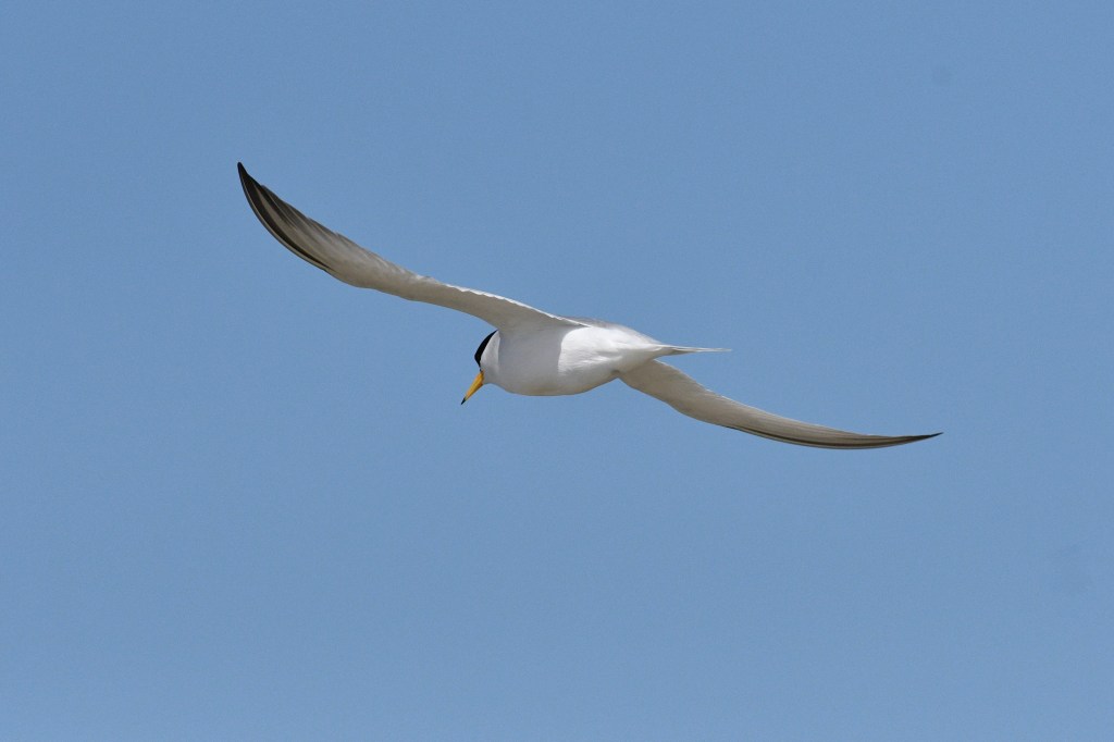 People along the coast see terns quite often – if they look. Yet many people never see what is surrounding them. At the beach there may be fish, whales, seals, gulls, terns, sandpipers and mollusks as well as sand, water, blankets, and people. Look around!! Gulls are pretty common on most salt water beaches and many fresh water beaches as well. They get a bad rap as “flying rats” and scavengers that might steal a sandwich from you or your child. In most places our rubbish is now collected and buried (big picture comment) and the loss of this easy food supply has been part of the reason for a decline in gulls over the past decade or two – and they seem to be less of a beach nuisance unless people are feeding them. The gulls are the most usual of beach wildlife sightings. But, terns are there – just off shore cruising over the water..