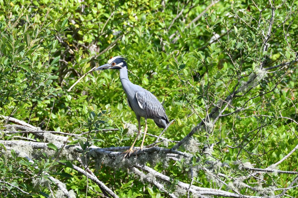 The Black-crowned Night-Heron (BCNH) is the most common of the Night-Heron group in the northeastern part of the US. We also get Yellow-crowned Night-Herons (YCNH) but not very often as nesting birds. The Yellow-crowns usually arrive in mid or late summer after the nesting colonies to the south break up and the birds disperse. The above is a Black -crowned Night-Heron showing the nuptial plume that adults get in breeding season. This is a common and widespread species.Another of the Night-Heron group is the Nankeen Night-Heron of the south Pacific. They are found in Australia, New Zealand, many of the Pacific island groups and on up into the Philippines. This one was photographed in Australia where they are widespread and found everywhere but the far western part of the country.However, today’s bird of the day is the Yellow-crowned Night-Heron. There is a pair that is sort of nest-building in the area. They are probably a little late in getting started, likely young birds, and they may not nest successfully. But who knows! There was an old-time Massachusetts State Ornithologist named Archie Hagar and in his retirement years we used to chat a bit – he told me that there had been a pulse of nesting YCNC when the green crab (Carcinus maenas) population bloomed. The YCNH are crab eaters and that relationship makes sense. When there are small numbers of breeding pairs there may be no relationship between crab numbers (a population explosion that is) and birds; but YCNH are dependent on crabs of one type or another as their primary and nearly sole food source. Like all predators they will take other foods (insects, lizards, small fish, and so on) but they really depend on crustaceans as the predominant food. The green crab is native to the European and north African coasts but has been spread around the world in ships ballast over the last few centuries. It was first seen in Massachusetts in 1833.Here is one of the local YCNH returning to, what might be, the nesting platform with a stick that looks like something pruned and left on the ground. They will make a nest woven of sticks and looking a bit scraggily in the first year. The birds often return to the same site and the same nest year after year, enlarging the nest each year. The male starts the nest but soon both sexes are actively building. They may start nests in several locations but soon focus their energy on one site. It takes three years for a YCNH to develop adult plumage – but they may still not get the breeding stuff right for another year or two.