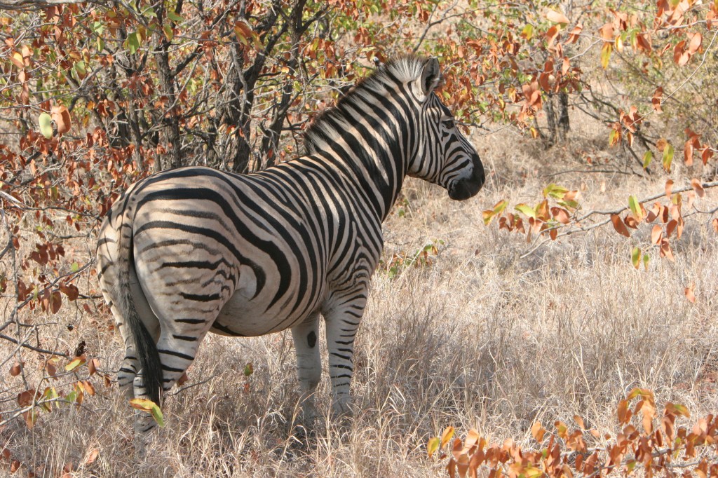 The zebra of the southern countries (South Africa, Botswana, Zimbabwe, Zambia, Angola, and Namibia) are a bit different. Climate change during the past few thousand years has isolated populations of all sorts of animals and zebra are no different. The habitat and climate of East Africa requires a great migration where the habitats in southern Africa do not. Oh, the animals move according to the weather and the loss of food sources but they do not move in the great waves that we see in east Africa. They are on different land, different soil, with different plants, and have had to accommodate different pressures. Thus they look a bit different and behave differently as well. This is simply survival of the most fit, the best adapted to the current habitat, and the tendency for a population to look different over time.