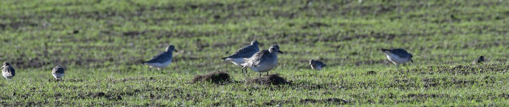 The grasses have attracted sandpipers and plovers, so in addition to the usual array of birds of prey there are now Dunlin, Black-bellied Plover, and a single Hudsonian Godwit; with a scattering of Horned Larks and American Pipits.