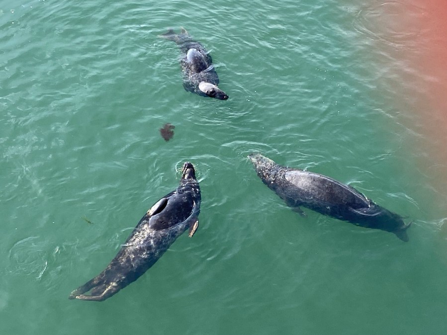 Big males will have a horse-like head. Females are smaller and sleeker and the head is more typically seal-like; that is pointed and maybe even funnel shaped. A large bulk Gray Seal will approach 3 meters (10′) in length and weight more than 600 pounds. Females can get to 500+ pounds but are often smaller. In Maritime Canada as well as Maine and Massachusetts there were bounty placed on seals as they were perceived as “thieves” stealing the fish that belonged to humankind. In Massachusetts the bounty persisted until the 1960s. The Cape Cod population has gone from about 2,000 in 1994 to about 16,000 in 2011 and now in 2021 the estimated population (by some accounts) is over 50,000. They wouldn’t be here if there wasn’t enough food. However the fisherman that enjoyed surf casting now see a lot more seals along shore than they see Blue Fish or Striped Bass.