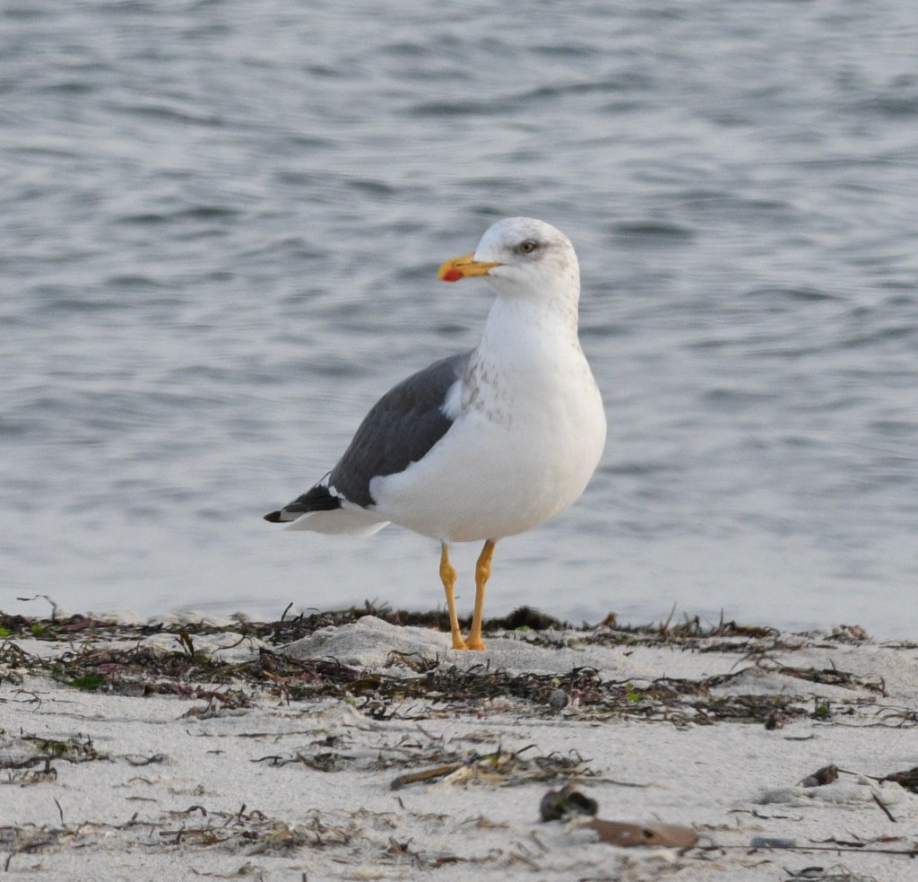 One of the oddities of birding is that weird still happens over and over. That is the fun of birding in part. In this case the uncommon Lesser Black-backed Gull(LBBG) has been frequenting the same 100 meters of beach in the winter for at least three years. Where it goes to breed or what it does when not around here is a mystery. There are few breeding LBBG in North American and most of those are up in the Canadian Maritimes. Perhaps our bird its just a pure and simple loner who has no breeding place to go each spring. Or, more likely, it heads back to its annual breeding area and, perhaps, finds that same mate and raises a youngster or two – and then bids them all good-bye and heads south again to our winter beach as they watch and wonder.