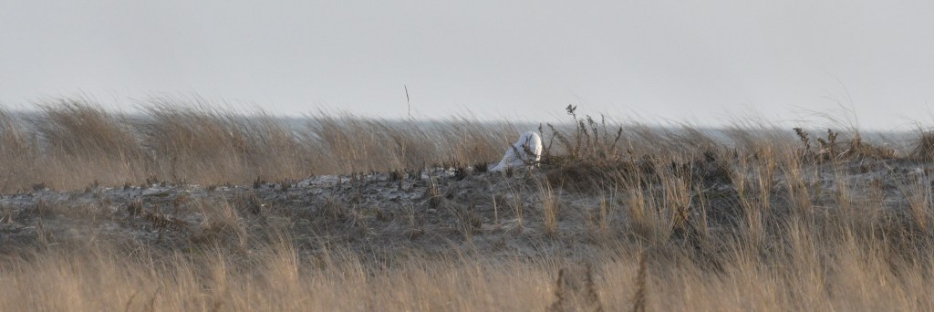 In the winter the Canadian barren lands might become snow covered, very cold, windy, and perhaps empty of small mammals called lemmings. When this happens the Snowy Owls of the area will move south. In most years they arrive in tundra-like areas and hang out. They are from a treeless region of the planet and so are quite happy in our salt marshes, dunes, and airports. Each of these locations is a bit barren and the owls settle in. However when they are at Logan Airport in Boston they can be deemed a threat to aircraft and the powers that be allow them to be live-trapped and relocated. It is thought that moving them south during the first half of migration and north from Boston in the second half best mimics what the birds would normally be doing. The fellow that has done this trapping (for 40 years or so now) has probably handled more Snowy Owls than anyone else in the world. It amazes me that these birds can sit around an airport full of jet noise and still hear and hunt with ease.