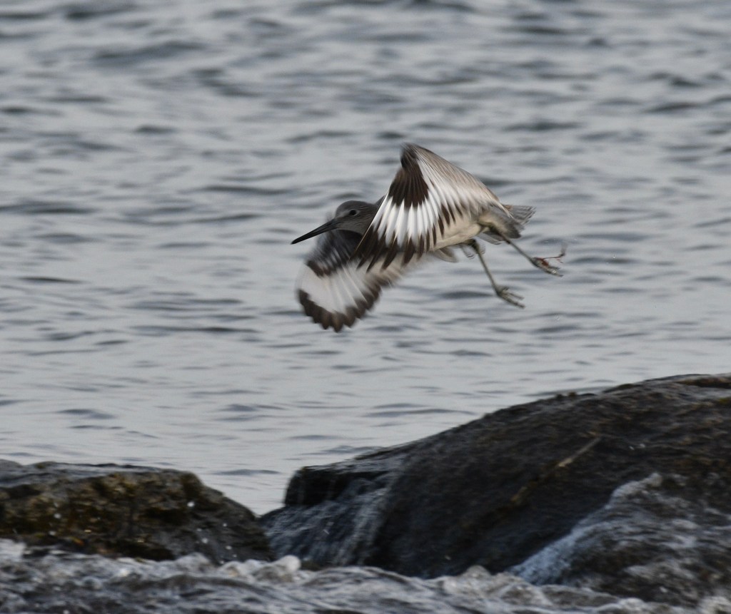 Not a great picture – but I wanted to show the surprise that this rather large dull gray shorebird is hiding as it walks the beach. It has a very splashy wing pattern that seals the ID once you see it.