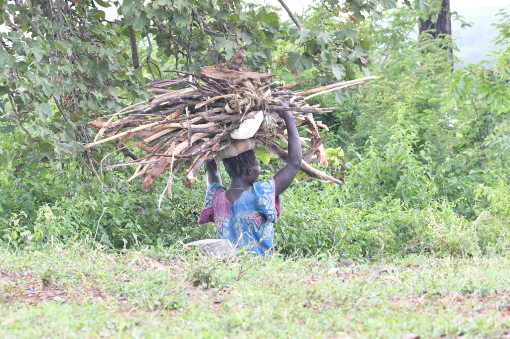 There are few ways to carry things; on a vehicle, in a cart or wagon, on a beast of burden, on your shoulder, or on your head. In much of the world it is a physical effort to get things done and that is true for much of Africa. I have been told over the years that there is almost no osteoporosis in these countries as the exercise gained from daily living keeps it at bay. Wood gathering is a woman’s task during the week and the kids help on the weekends when they are out of school.