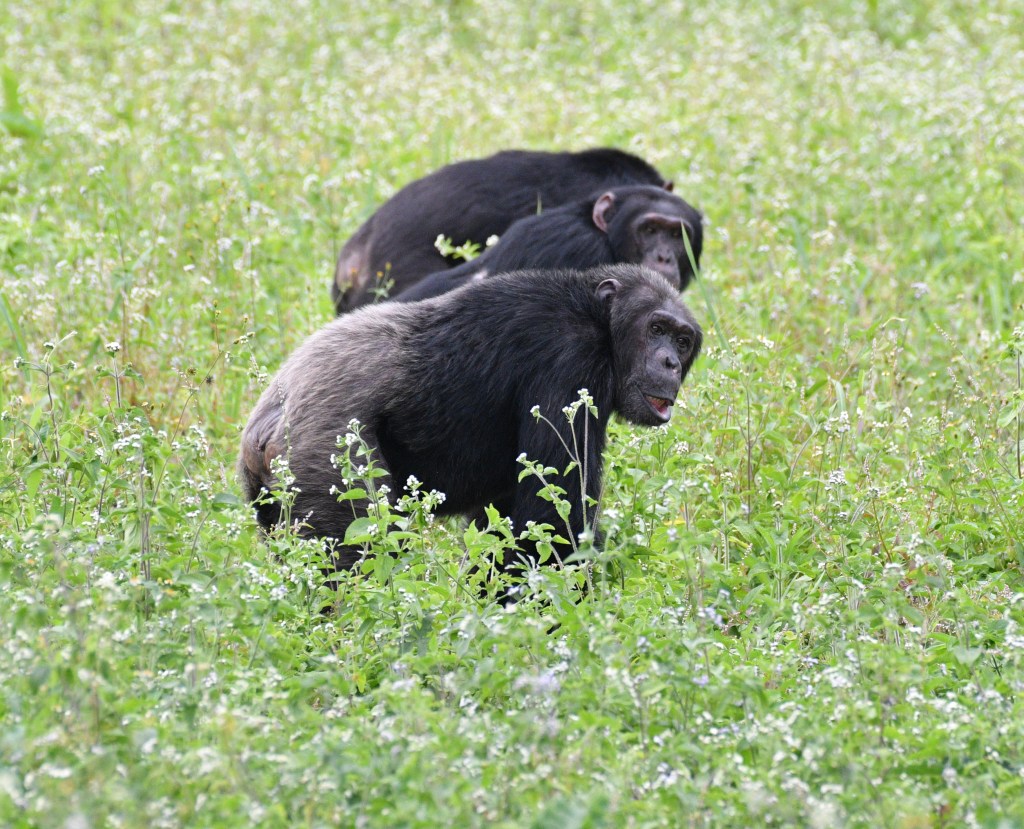 In Uganda the apes are doing well in the protected forests, although habitat loss, primarily to agriculture, limits their potential for population increase. The same in the DRC and Rwanda though the DRC is vast and mostly still undeveloped. Gorilla and Chimpanzee tourism has been a game changer for these countries and for the local people as well. Nowadays there is a good deal of income based on the American, Asian, and European visitor who pays just under $1000 to get to stay an hour with a habituated gorilla group. Chimpanzee tourism also exists but chimps are less predictable and are often moving about – and significantly less expense to visit. Our group stumbled on both gorillas and chimpanzee as we traveled about the countryside.