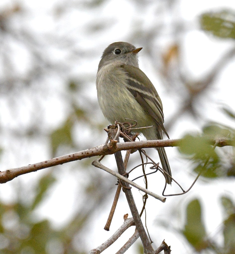 The Hammond’s Flycatcher is found normally in tall, usually coniferous, forests in the far west. In the right habitat it can also be found as far east as Wyoming and Colorado. It is one of a group of flycatchers in the Empidonax group. There are about 11 species of Empidonax species in the USA and they are all quite similar. Those birders with good ears can tell them best by sound and song. The taxonomy of the Empidonax is a history of lumping and splitting types into or out of species groupings.